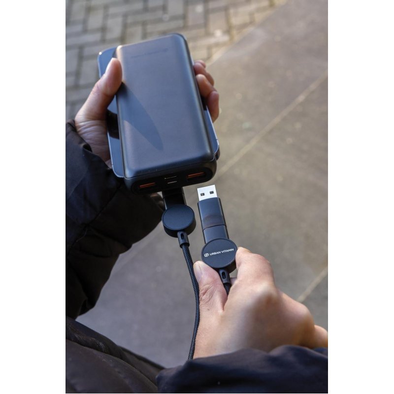 Берите от жизни максимум. Кабель 6-в-1 подходит для быстрой зарядки любых современных устройств. Изготовлен из сертифицированных RCS переработанных материалов. Recycled Claim Standard — это стандарт для проверки вторичного сырья и контроля всей цепочки поставок. 5 разъемов: USB C, USB A, Type-C, Lightning для iOS, micro USB. Максимальная проводимость тока пары Type-C/Lightning для iOS — 18 Вт. Максимальная проводимость тока пары Type-C/Type-C — 45 Вт. Длина 120 см. Поставляется в упаковке с минимальным содержанием пластика.