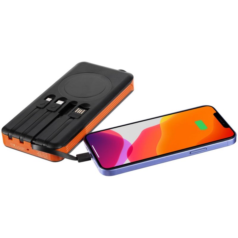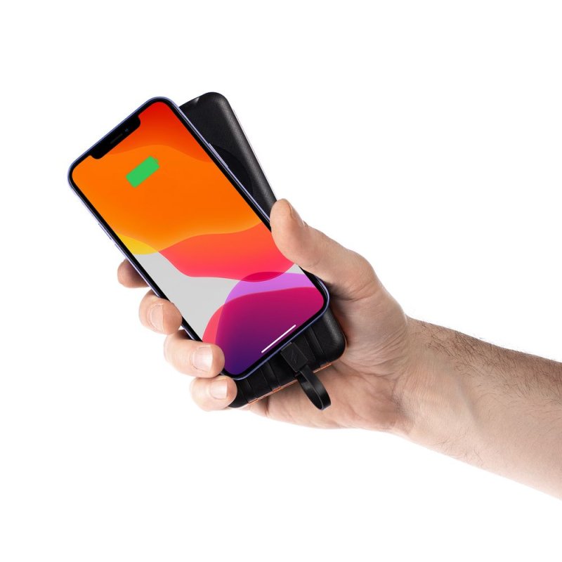 Holiday Maker — outdoor-аккумулятор с ударопрочным корпусом и защитой от пыли и брызг, который не страшно взять в поход. 3 встроенных кабеля с разъемами micro USB, Type-C и Lightning позволяют удобно заряжать разные типы устройств, а солнечная батарея поможет не остаться совсем без связи. Яркий фонарик осветит путь или послужит сигнальным маячком.