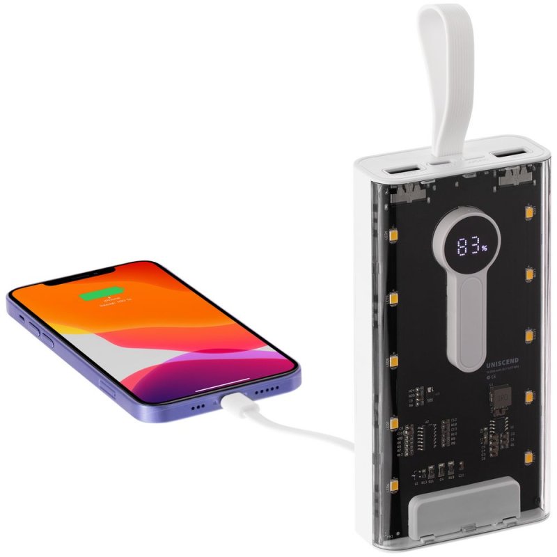Необычный дизайн коллекции Uniscend Trellis выгодно выделяет новую серию устройств из прозаичного ряда внешних аккумуляторов. Они не поддерживают беспроводную зарядку, зато точно привлекают внимание: под прозрачной панелью хорошо видны электронная начинка и цифровой индикатор оставшегося в аккумуляторе заряда, а мягкая подсветка светодиодами теплого оттенка логичным образом дополняет технологичный внешний вид.