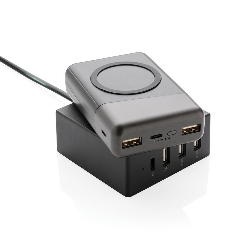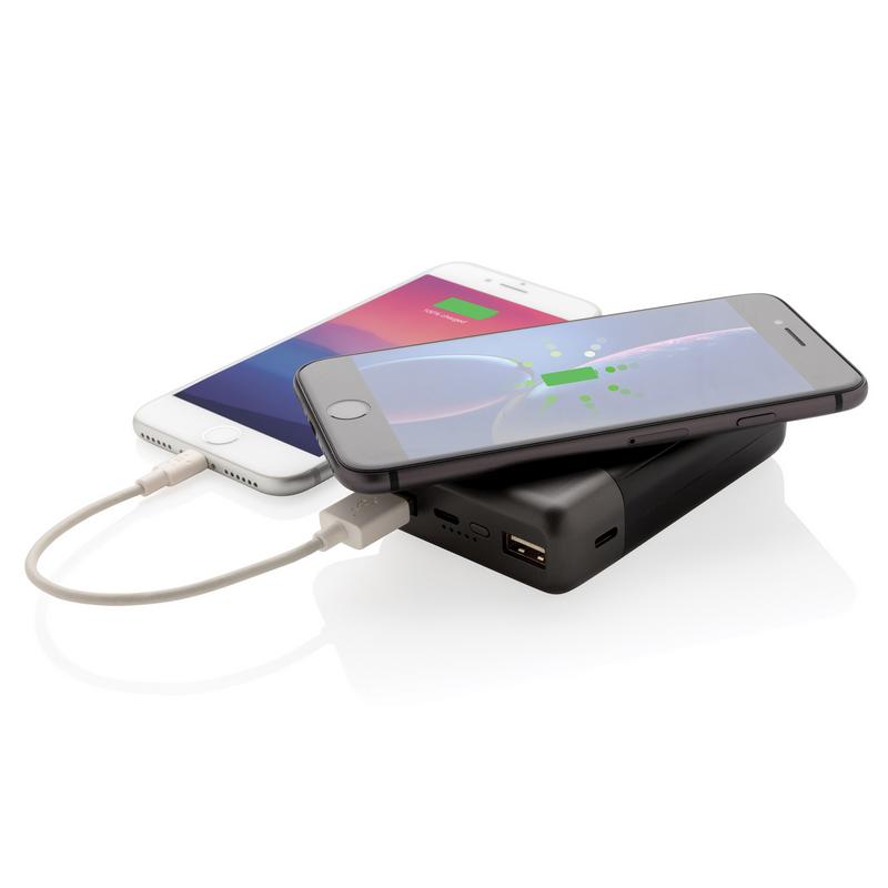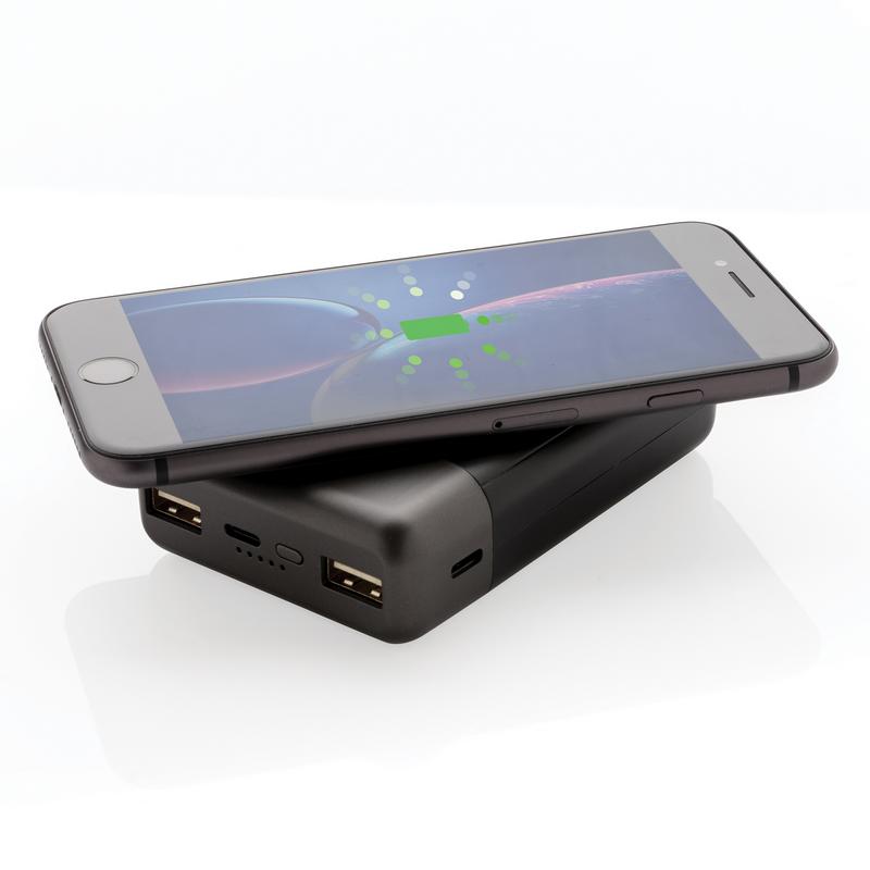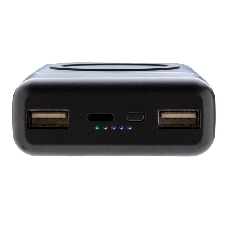В этом внешнем аккумуляторе есть все, что вам нужно. Внешний аккумулятор карманного размера можно заряжать без проводов, просто разместив его обратной стороной на док-станции с функцией беспроводной зарядки. С другой стороны, лицевую часть можно использовать для беспроводной зарядки (5W) ваших мобильных устройств, просто расположите ваш девайс на поверхность зарядки с силиконовым кольцом. Функция беспроводной зарядки подходит смартфонам на Android последнего поколения, а также iPhone 8 и выше. Для зарядки при помощи кабеля предусмотрены 2 USB порта и 3 разъема: Micro/Type C вход/ Apple Lightning. Устройство оснащено долговечным литий-полимерным аккумулятором 10000 мАч высокой плотности класса A. 2 USB порта: 5V/2A. Micro/Type C Вход: 5V/2A; Lightning Вход: 5V/1A. Беспроводной выход 5V/1A.