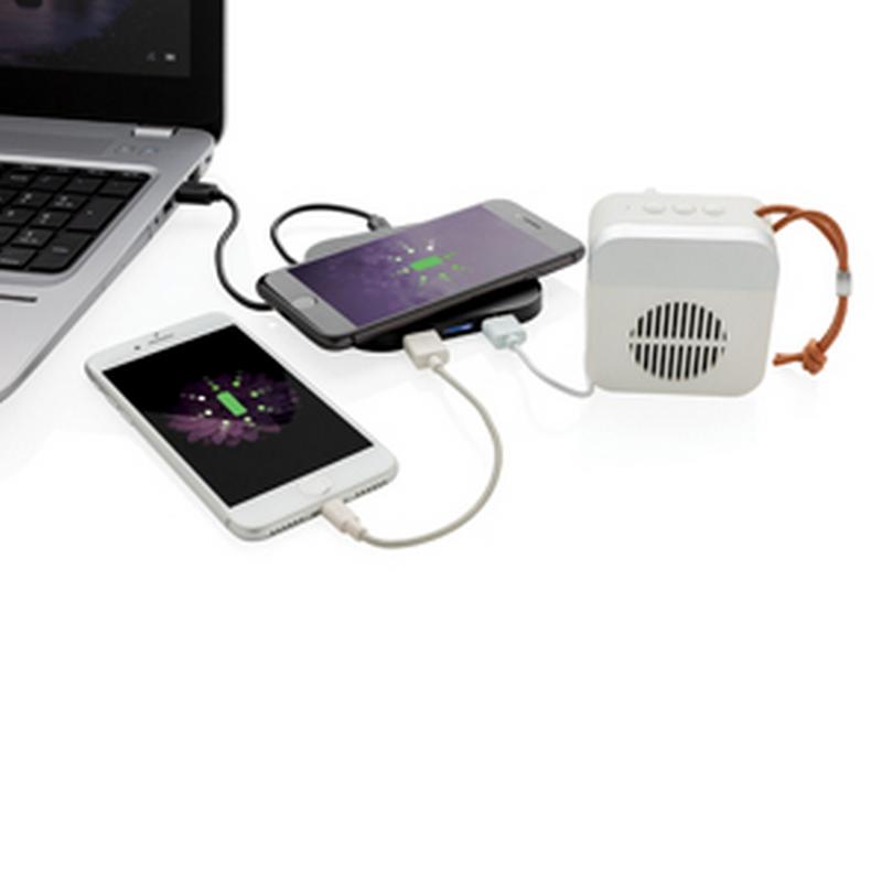 Док-станция для беспроводной зарядки подсоединяется к компьютеру через разъем USB и подходит для последнего поколения мобильных устройств Android и iOS. Более ранние модели можно подзарядить, подключив их через кабель к любому из двух USB-портов. Корпус станции изготовлен из прочного ABS-пластика. Не подходит для синхронизации, только для зарядки. Вход: 1 А. Выход: 5 В / 1 А. Беспроводной выход: 5 Вт.