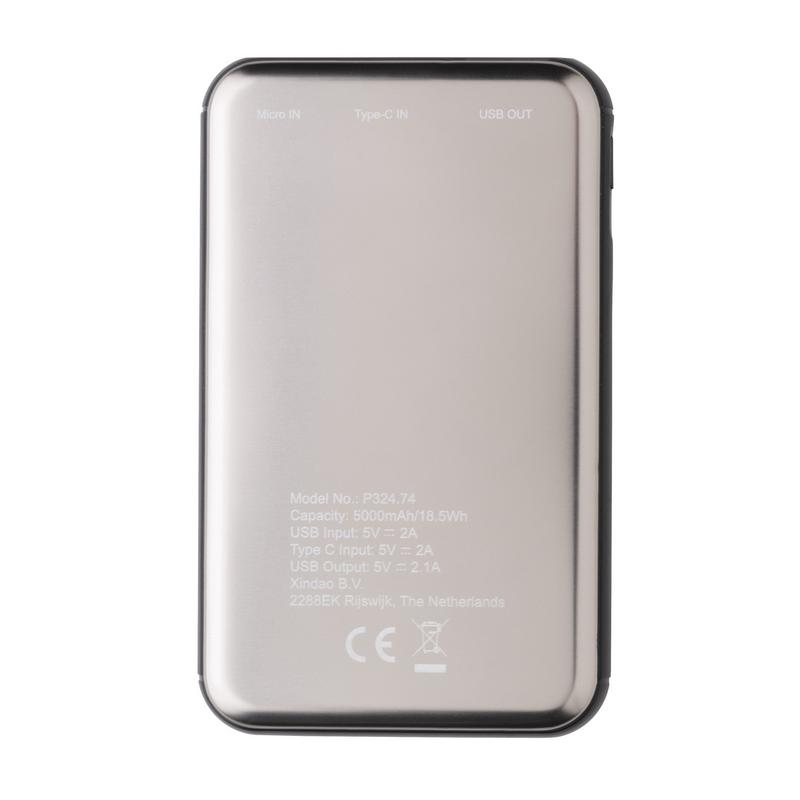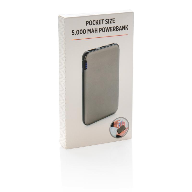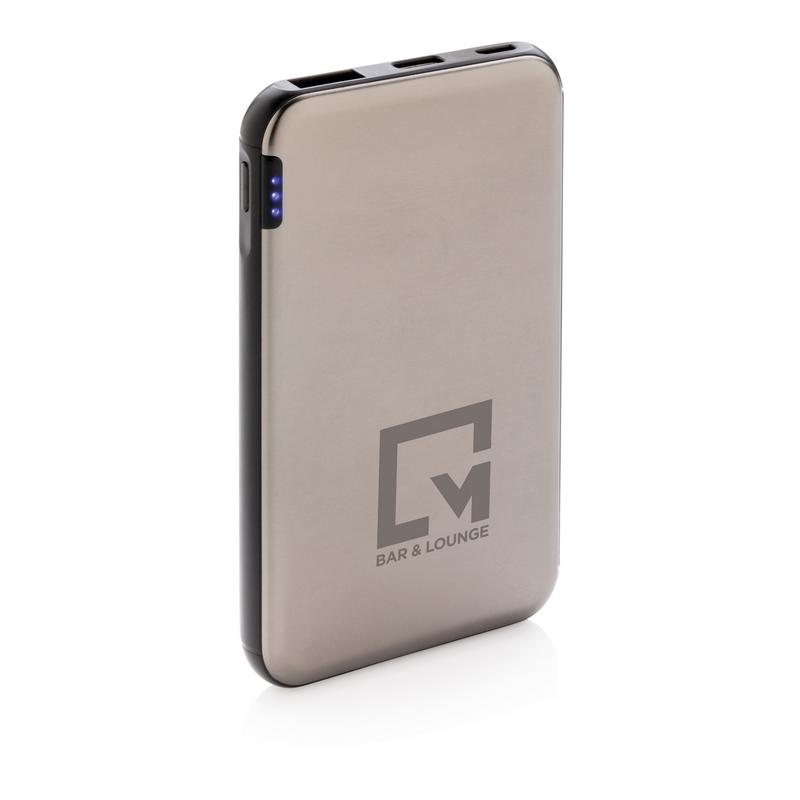 Ультра-тонкий внешний аккумулятор емкостью 5 000 мАч изготовлен из высококачественного алюминиевого сплава способен, благодаря своему уникальному дизайну, с легкостью уместиться в кармане. Энергии полностью заряженного литий-полимерного аккумулятора высокой плотности хватит, чтобы зарядить ваш смартфон до двух раз. Удобные световые индикаторы отображают уровень заряда, напоминая о необходимости подзарядить устройство. Напряжение как на входе, так и на выходе составляет 5В/2,1A.