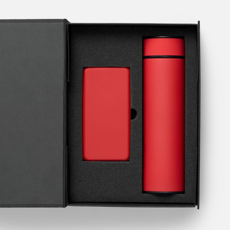 - Материал:аккумулятор - пластик; покрытие софт-тач; термос - нержавеющая сталь, 304; покрытие софт-тач; коробка - переплетный картон