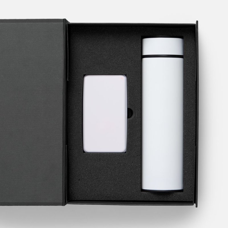 - Материал:аккумулятор - пластик; покрытие софт-тач; термос - нержавеющая сталь, 304; покрытие софт-тач; коробка - переплетный картон