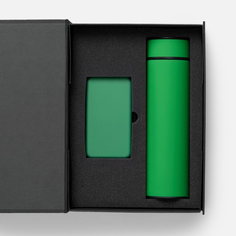 - Материал:аккумулятор - пластик; покрытие софт-тач; термос - нержавеющая сталь, 304; покрытие софт-тач; коробка - переплетный картон