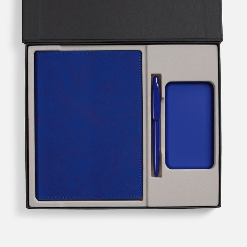 Набор с внешним аккумулятором позволит всегда оставаться на связи, а бессменная офисная классика — ежедневник и ручка — помогут направить энергию в правильное русло!