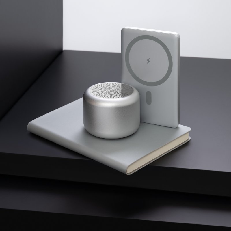 Благодаря усиленному магниту MagSafe, ваш iPhone будет надёжно закреплён на аккумуляторе, обеспечивая стабильное и эффективное пополнение энергии. Прочный алюминиевый корпус не только придает устройству премиальный вид, но и защищает его от повреждений. Техническая информация размещена на боковой грани.
