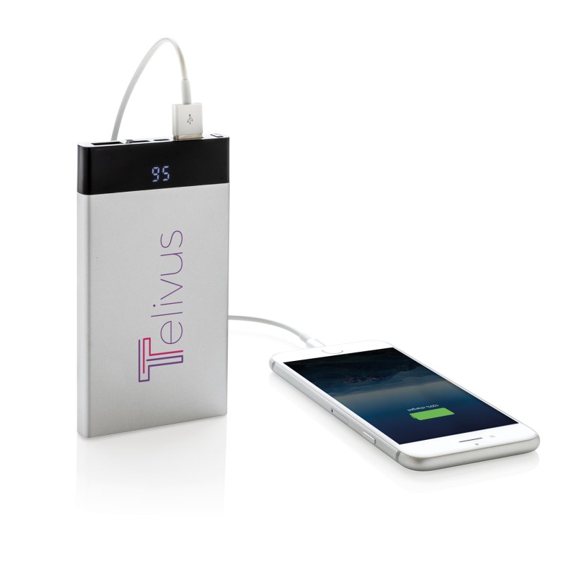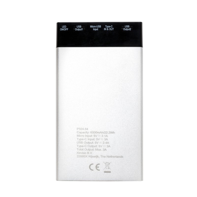 Ультратонкий внешний аккумулятор Flat изготовлен из алюминия, емкость встроенного литий-полимерного аккумулятора составляет 6 000 мАч. На корпусе предусмотрен цифровой дисплей, который отображает уровень заряда аккумулятора. Благодаря функции быстрой зарядки, зарядить как сам аккумулятор, так и мобильное устройство от него можно вдвое быстрее обычного. На устройстве предусмотрены порты USB, micro-USB и Type-C, при этом порт Type-C работает как на вход, так и на выход. Напряжение на входе для micro-USB составляет 5V/2.1A, для Type-C - 5V/3A. Напряжение на выходе для USB составляет 5v/2.4A, для Type-C - 5V/3A.