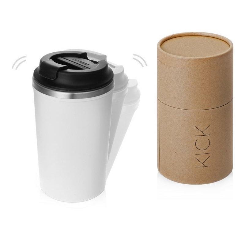 Термокружка Kick отлично подойдет для повседневного использования как на работе, так и дома. Термокружка надежно крепится к столу за счет присоски на дне, что исключает падения при случайном задевании. Чтобы воспользоваться кружкой, ее нужно поднять вертикально. Дополняет конструкцию герметичная крышка с клапаном. Внутренняя колба выполнена из пищевой нержавеющей стали 304 марки, снаружи — пластик с покрытием софт тач. Удерживает тепло около 3.5 часов.