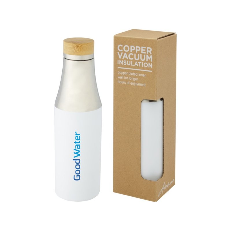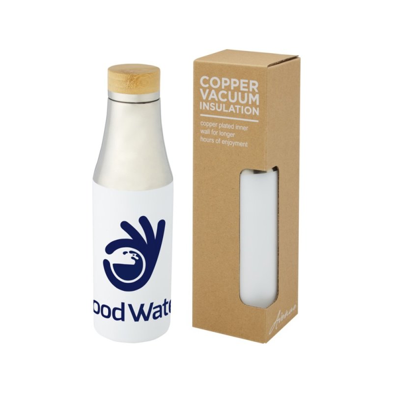 Простота и элегантность делают эту бутылку идеальным подарком. Бутылка имеет крышку из нержавеющей стали с элементом из органического бамбука на верхней части. Благодаря двустенной конструкции, медной вакуумной изоляции и нержавеющей стали 18/8 напитки долго остаются горячими или холодными. Протестировано и одобрено согласно немецкому законодательству о безопасности пищевых продуктов (LFGB), а также проверено на содержание фталатов согласно нормам REACH. Объем 540 мл. В коробке из переработанного картона. Нержавеющая сталь, бамбук.
