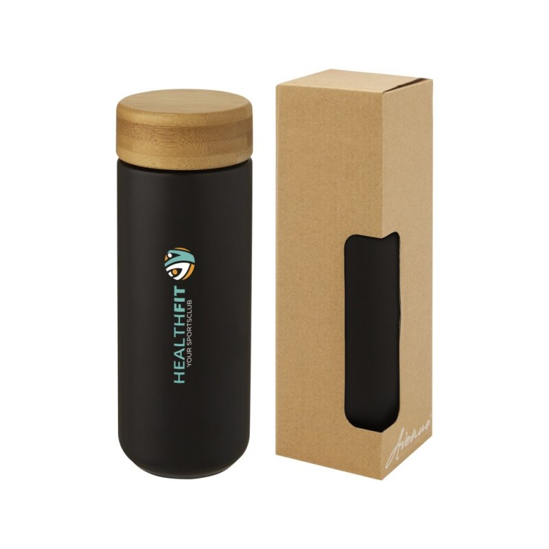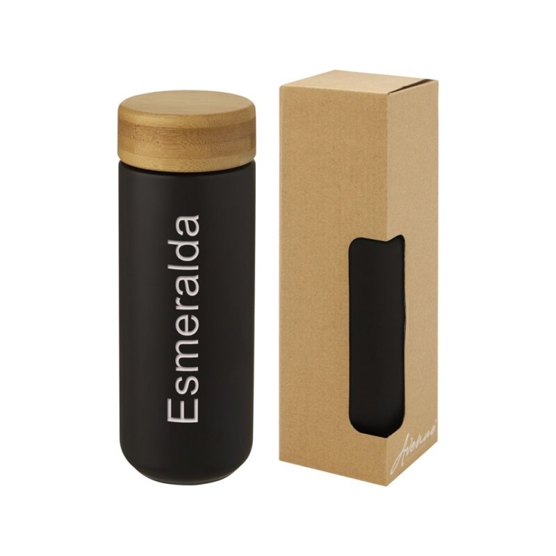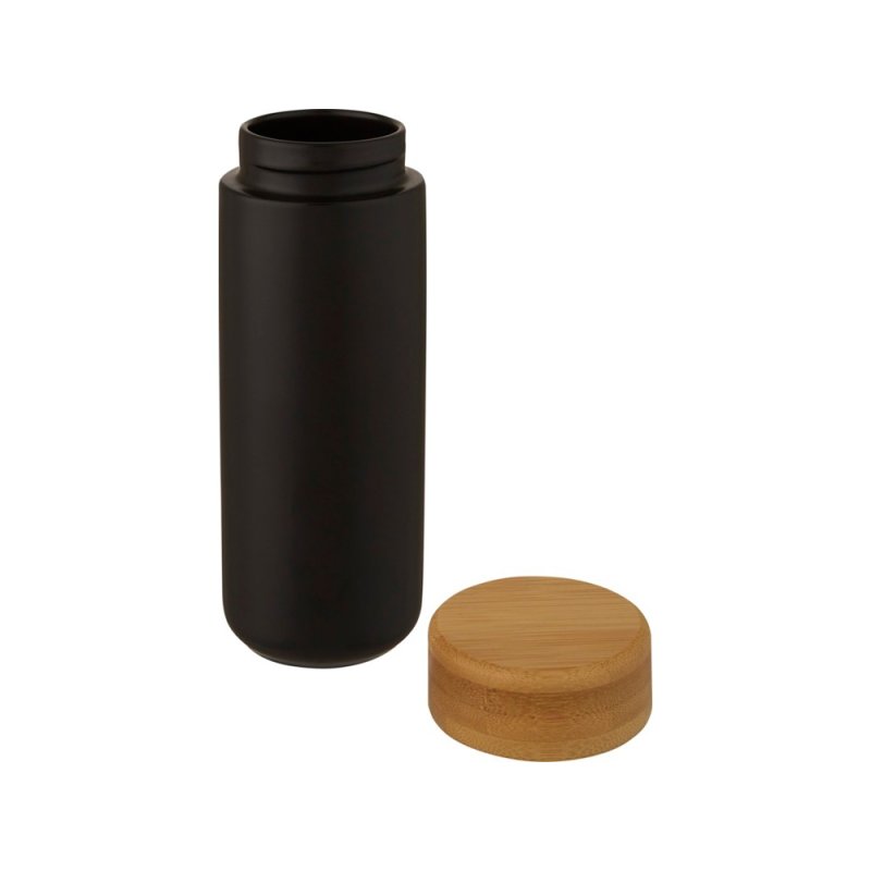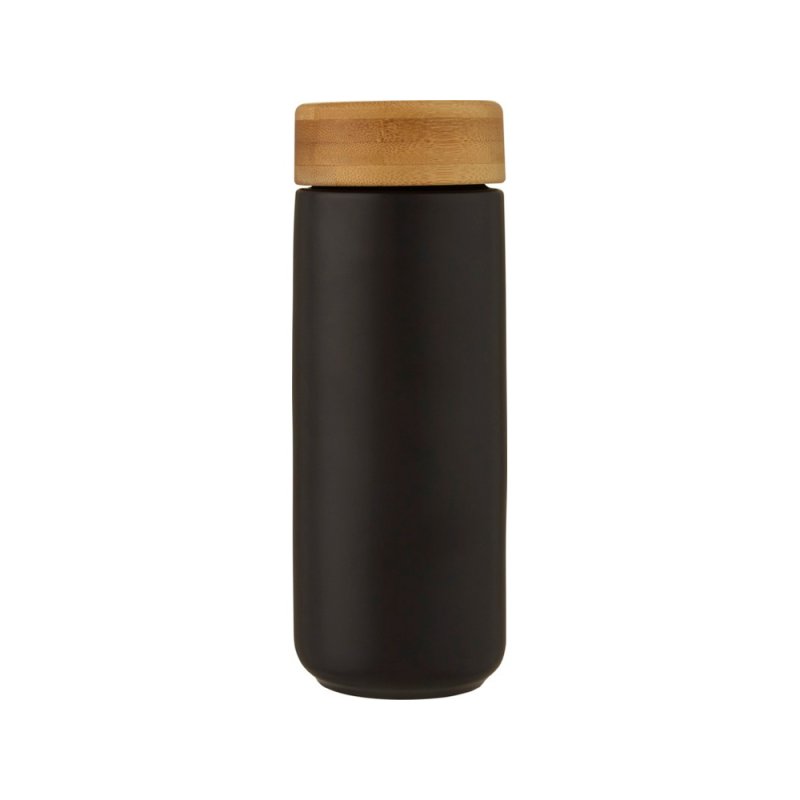 Керамическая кружка со стильной бамбуковой крышкой. Керамическая конструкция с двойными стенками помогает предотвратить образование конденсата на внешней стороне кружки. Навинчивающаяся крышка с защитой от проливания изготовлена из экологичного бамбука, отвечающего принципам экологической и социальной ответственности. Не содержит БФА, испытано и одобрено в соответствии с немецким законодательством о безопасности пищевых продуктов (LFGB). Проверена на содержание фталатов и одобрена для использования в соответствии с правилами REACH. Объем 300 мл. Рекомендуется мыть вручную. В подарочной коробке из переработанного картона.