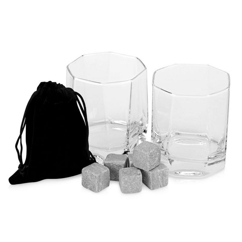Перед использованием вымойте камни под проточной водой, чтобы удалить с них пыль или другие загрязнения, высушите полотенцем и поместите камни в морозильную камеру на пару часов, а затем используйте вместо льда для охлаждения напитков, чтобы получить неразбавленный холодный виски. В комплекте : два бокала для виски, 6 камней из талькохлорита, бархатный мешочек.