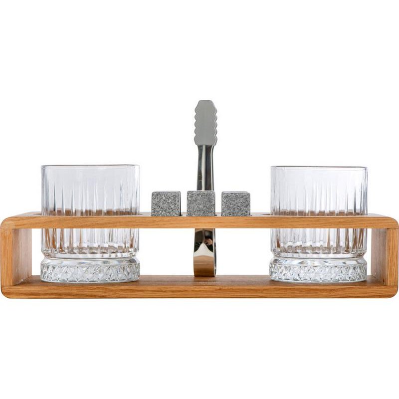 - Комплектность:деревянная подставка 28 х 11,6 х 5,7 см, бокал 210 мл- 2 шт, камень для виски 2 х 2 см- 6 шт, щипцы, упаковочная коробка