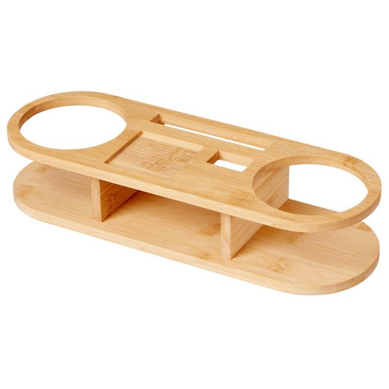 Подставка (1 шт.),на которой компактно размещены все предметы набора. Выполнена из бамбука.