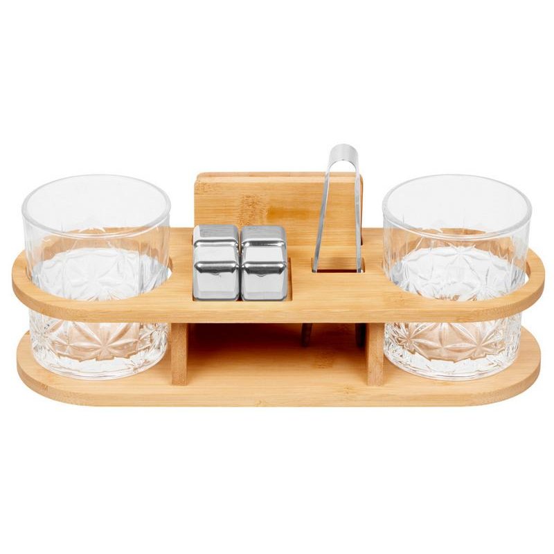 - Комплектность:бокал для виски- 2 шт, щипцы, стальные камни- 4 шт, бамбуковый костер- 2шт