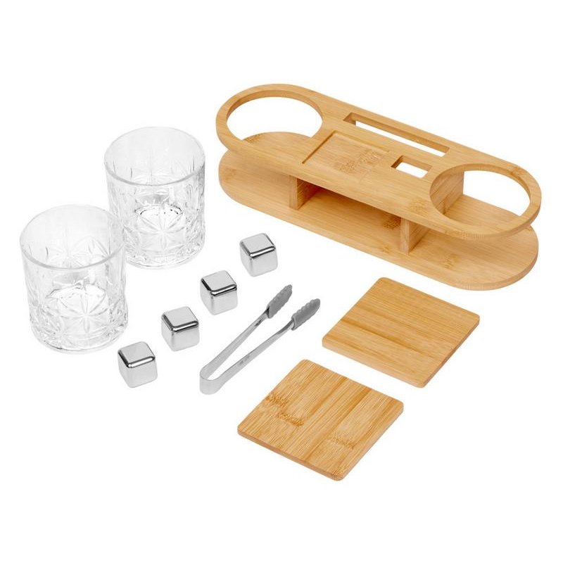 Набор для виски на бамбуковой подставке Boulevardier достаточно практичен - он состоит из 10 предметов, которые позволят правильно сервировать виски или какой-либо другой напиток. Все элементы набора компактно размещены на специальной подставке из бамбука, в которой для каждого предмета есть свое место — это позволяет экономить место на кухне или в столовой.