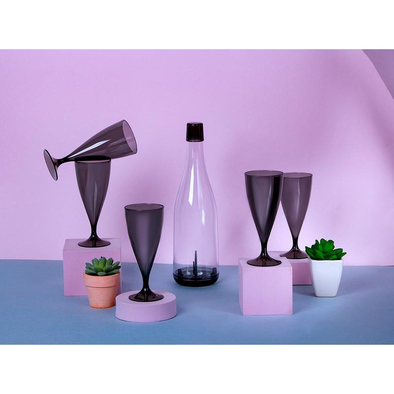Бокалы упакованы в пластиковую бутылку со съёмным дном, которую удобно брать с собой на пикники.