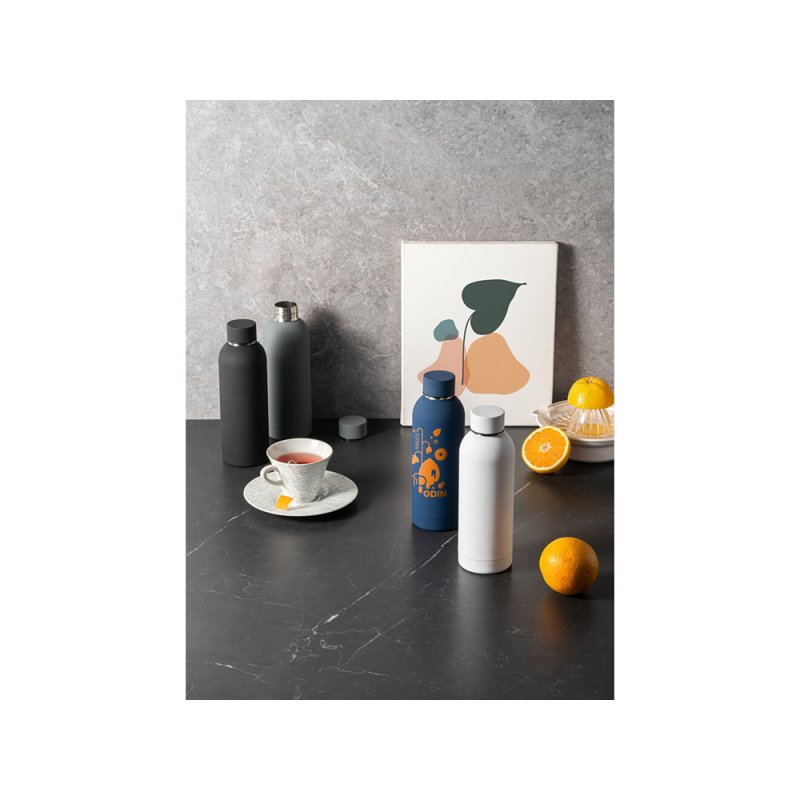Термобутылка из нержавеющей стали с soft-touch покрытием, двойной корпус с вакуумной изоляцией и вместимостью до 550 мл.