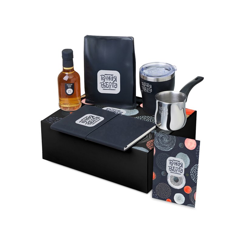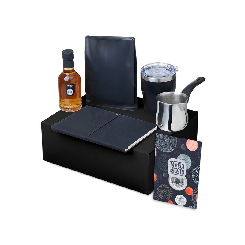- Материал товара:сироп - стекло, блокнот - искусственная кожа, бумага, турка - нержавеющая сталь, бакелит, кофе - пластик, термокружка - нержавеющая сталь, керамика, полипропилен, мешок - нетканый материал (спанбонд), коробка -картон