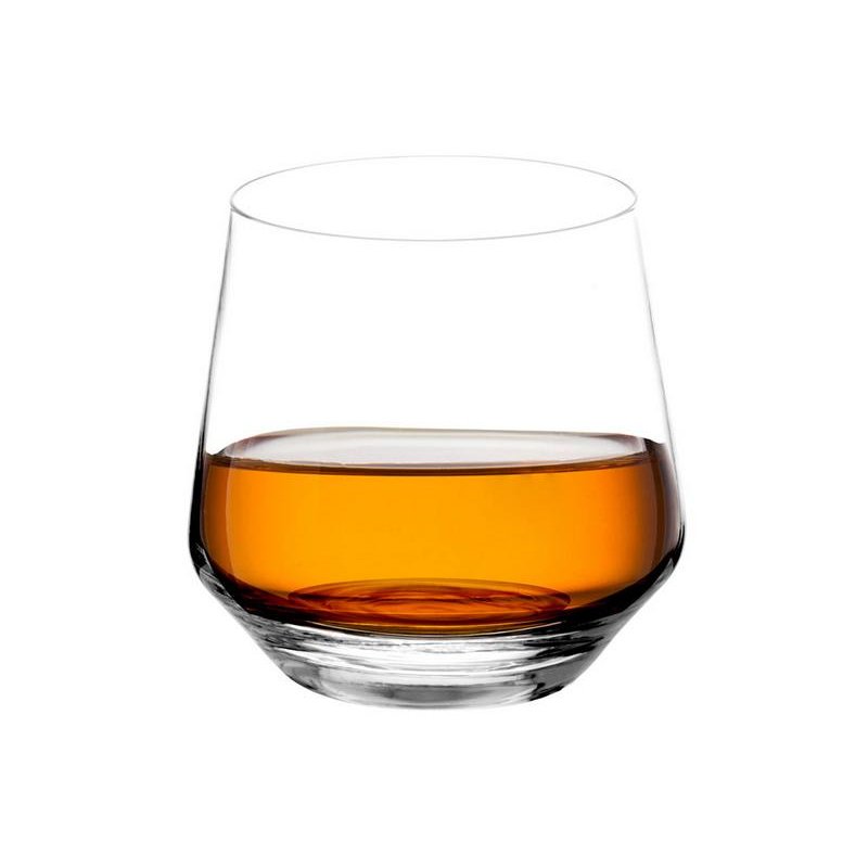 Стеклянный бокал необычной формы — вариант, чтобы разнообразить домашний мини-бар. Подходит не только для крепких напитков, но и для воды, коктейлей и соков.