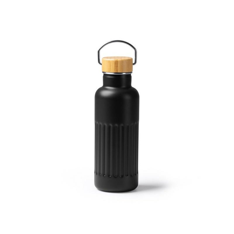 Термобутылка из переработанной нержавеющей стали 304 с двойнымистенками и бамбуковой крышкой. Объём: 500 мл. Упакована в экологичную коробку.