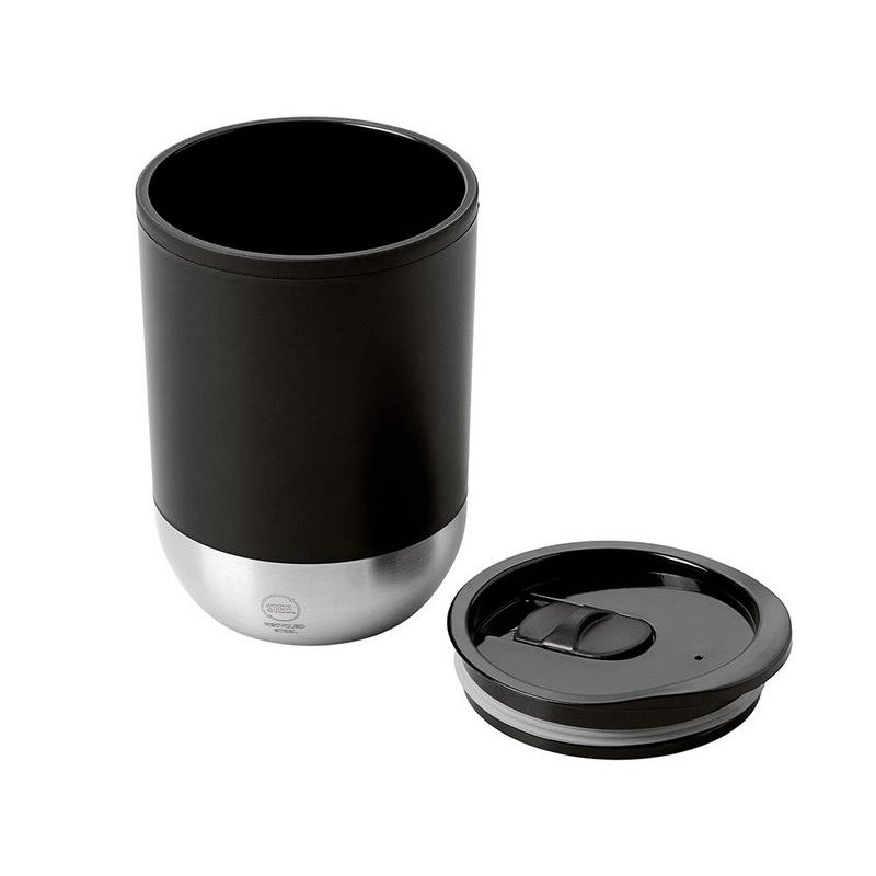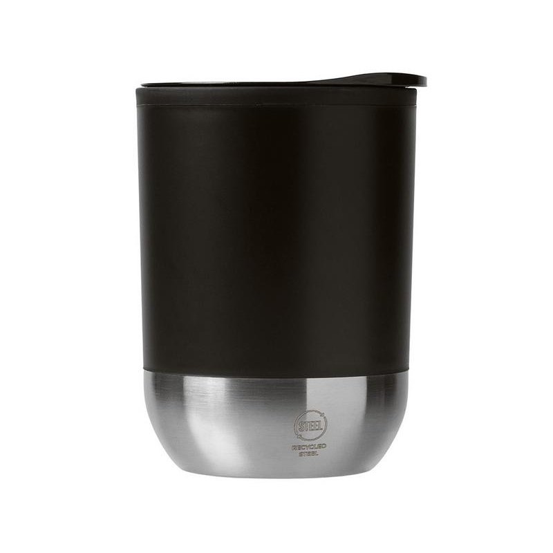 Термокружка с двойными стенкамииз переработанного полипропилена и дном из нержавеющей стали 304. В комплекте крышка-слайдер. Объём: 290 мл. Поставляется в экологичной коробке.