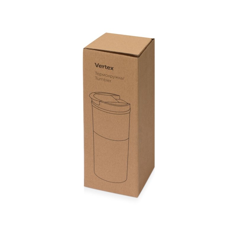 Термокружка Vertex удобной классической формы. В дизайне термокружки удачно сочетаются два материала. Внутренняя колба и верхняя часть термокружки выполнены из пищевого пластика. Нижняя часть – из нержавеющей стали. Обе поверхности подходят для нанесений. Крышка имеет плотный клапан, который открывается на 180° и не мешает при использовании. Сохраняет тепло до 3-х часов. Поставляется в индивидуальной крафтовой упаковке.