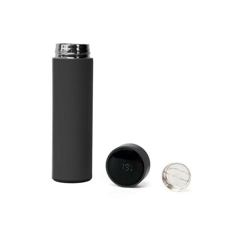 Термос из нержавеющей стали, покрытый цветным soft touch, с крышкой, в которой встроен термометр и LED дисплей, показывающий температуру внутри термоса. Объем: 500 мл. Упаковка: каждый термос в крафт коробке.