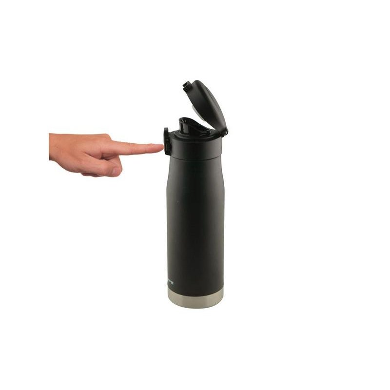 Матовый черный термос с блестящей отделкой дна. Герметичная крышка с откидным механизмом, кнопкой открывания и блокировкой от случайного нажатия защищают термос от проливания, благодаря чему содержимое вашей сумки всегда будет в безопасности с Liberty Canteen. Широкое горлышко позволяет удобно насыпать в термос лед и мыть внутреннюю колбу.