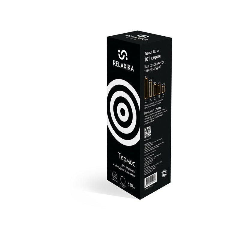Классический термос Relaxika с высокими показателями удержания температуры напитка для походов, путешествий, спорта и ежедневного использования. Прочные двойные стенки из высококачественной нержавеющей стали 18/8 с вакуумной изоляцией гарантируют, что ваш напиток останется холодным в течение 22 часов и горячим до 16 часов. Этот материал не только прочен, но и гигиеничен, не выделяет никаких вредных для здоровья веществ. Ваши напитки сохраняет естественный вкус и не приобретут посторонний запах. Напиток остается холодным до 22 часов и горячим до 16 часов.