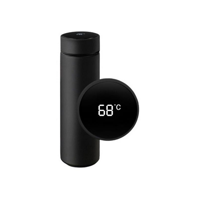 Металлический термос с двойными стенками и датчиком температуры.