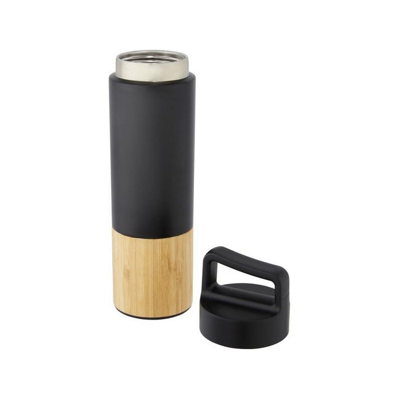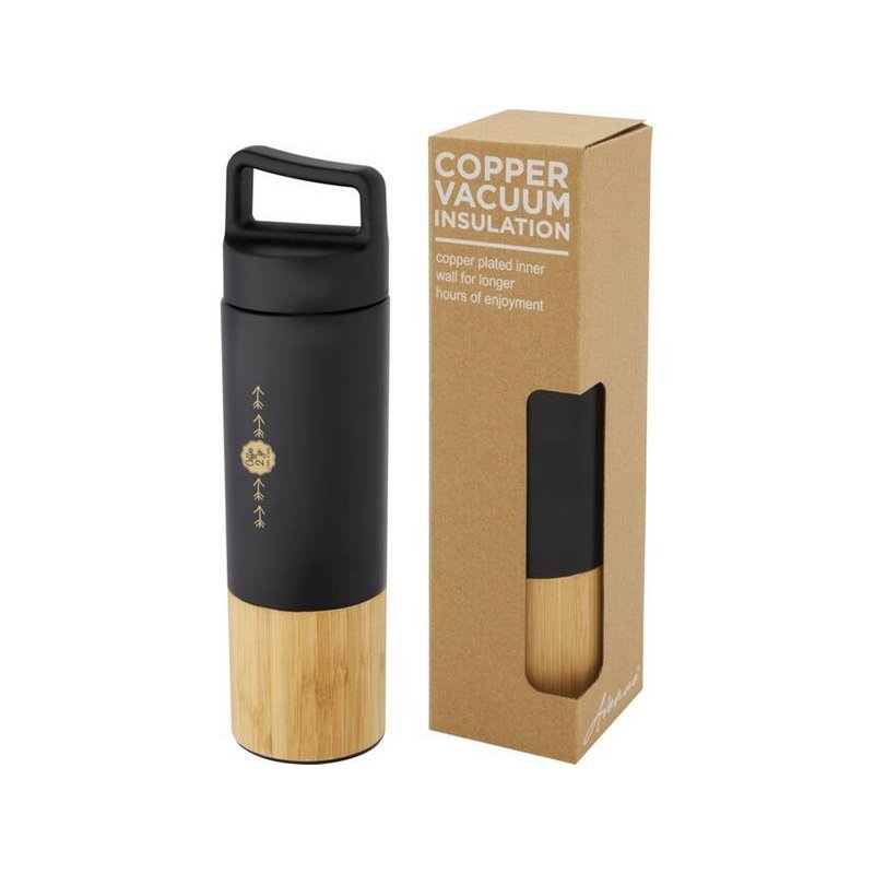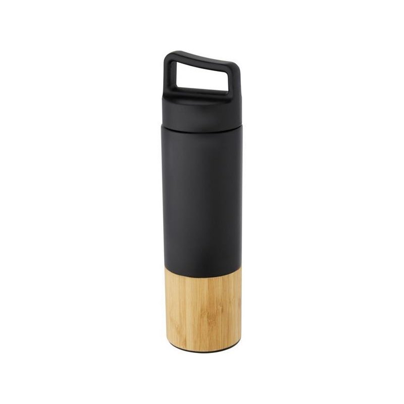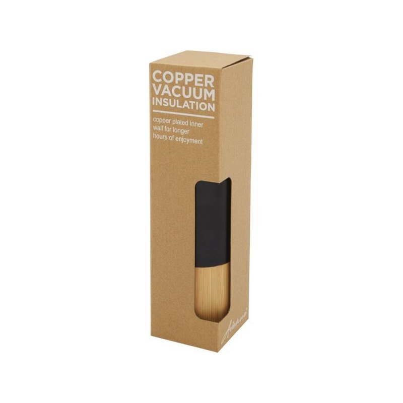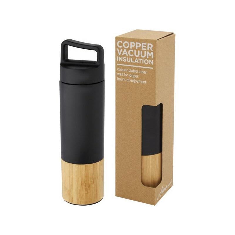 Бутылка из нержавеющей стали 18/8 с медной вакуумной изоляцией сохраняет напитки горячими или холодными в течение нескольких часов. Имеет модный элемент из бамбука; бутылку легко носить с собой благодаря ручке на верхней части крышки. Бутылка имеет широкое горлышко, поэтому ее легко наполнять и мыть. Протестировано и одобрено согласно немецкому законодательству о безопасности пищевых продуктов (LFGB), а также проверено на содержание фталатов согласно нормам REACH. Объем 540 мл. В коробке из переработанного картона. Нержавеющая сталь, бамбук.