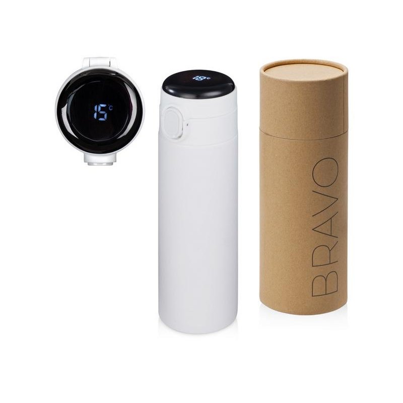 Вакуумная термокружка с медной изоляцией между стенками, которая точно не даст вам обжечься: сенсорный индикатор температуры сообщает о температуре напитка, выводя на дисплей информацию в градусах Цельсия. Что немаловажно, сенсор работает от сменной батарейки, что существенно продлит срок службы Bravo, позволяя не расставаться с полюбившейся термокружкой.