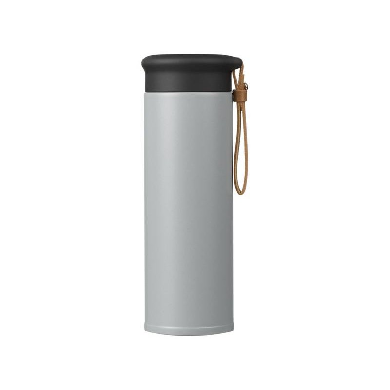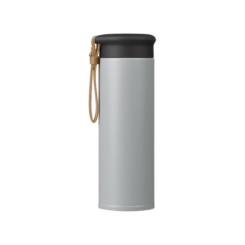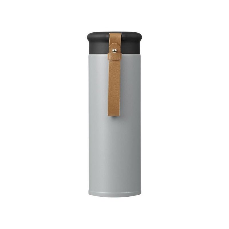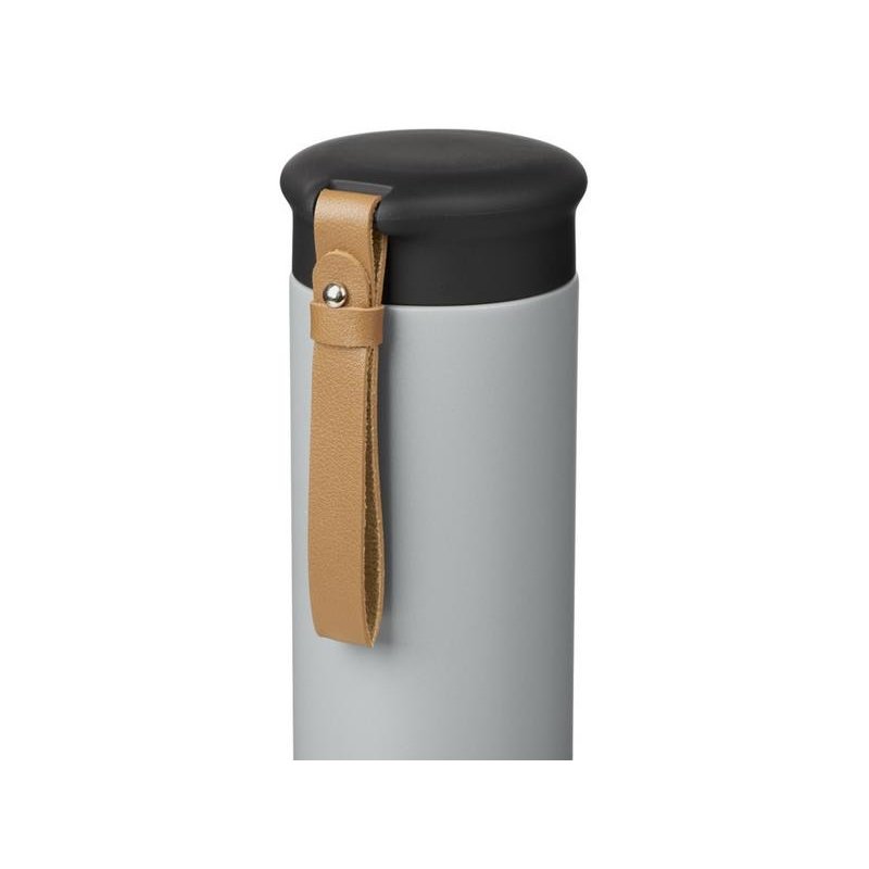 Термос герметично завинчивается на крышку, оснащенную съемным ремешком из качественной ПУ кожи. Крышка имеет прорезиненное покрытие, что создает интересное сочетание текстур в рамках одной модели. Корпус имеет элегантную рельефную поверхность с антискользящим эффектом.