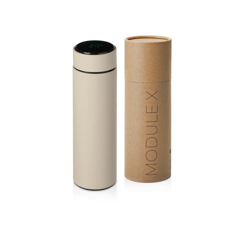 Вакуумный термос Module X не только сохраняет ваши напитки горячими, но и показывает, насколько они горячие! Уникальная особенность термоса — это сенсорный индикатор температуры, расположенный в крышке. Чтобы узнать температуру внутри термоса, достаточно прикоснуться к поверхности крышки. Батарейку CR2032 по истечении срока работы (1-2 года) можно заменить — для этого открутите верхнюю часть крышки против часовой стрелки и аккуратно поменяйте элемент питания.