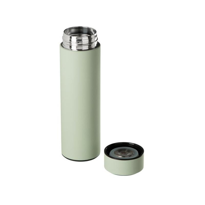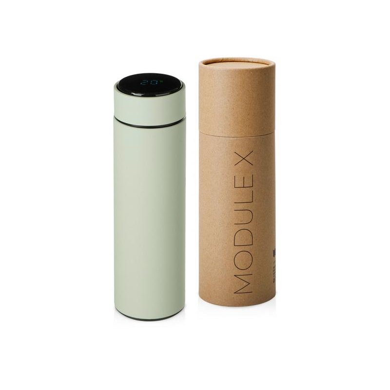 Вакуумный термос Module X не только сохраняет ваши напитки горячими, но и показывает, насколько они горячие! Уникальная особенность термоса — это сенсорный индикатор температуры, расположенный в крышке. Чтобы узнать температуру внутри термоса, достаточно прикоснуться к поверхности крышки. Батарейку CR2032 по истечении срока работы (1-2 года) можно заменить — для этого открутите верхнюю часть крышки против часовой стрелки и аккуратно поменяйте элемент питания.
