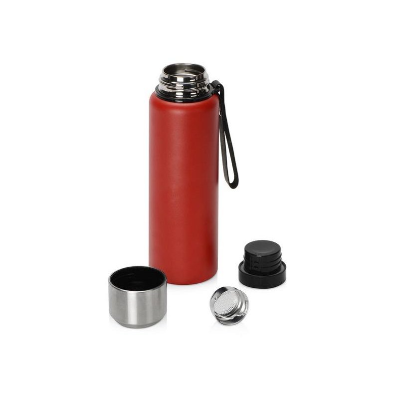 Вакуумный термос c двойными стенками из пищевой нержавеющей стали 304 марки для небольших путешествий и отдыха на природе. Надежно удерживает тепло и холод в течение 24 часов. Крышку можно использовать в качестве чашки. В комплекте имеется съемное ситечко из нержавеющей стали. Имеется прочный и удобный ремешок для переноски. Корпус покрыт специальной порошковой краской для надежного хвата и защиты от царапин. Объем 800 мл.