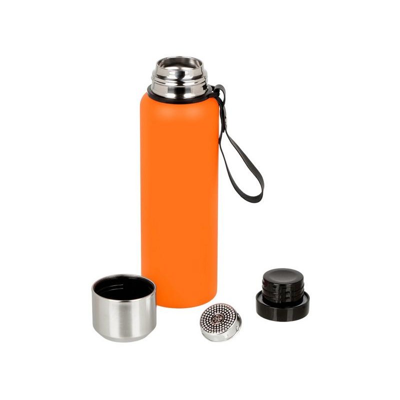Вакуумный термос c двойными стенками из пищевой нержавеющей стали 304 марки для небольших путешествий и отдыха на природе. Надежно удерживает тепло и холод в течение 24 часов. Крышку можно использовать в качестве чашки. В комплекте имеется съемное ситечко из нержавеющей стали. Имеется прочный и удобный ремешок для переноски. Корпус покрыт специальной порошковой краской для надежного хвата и защиты от царапин. Объем 800 мл.