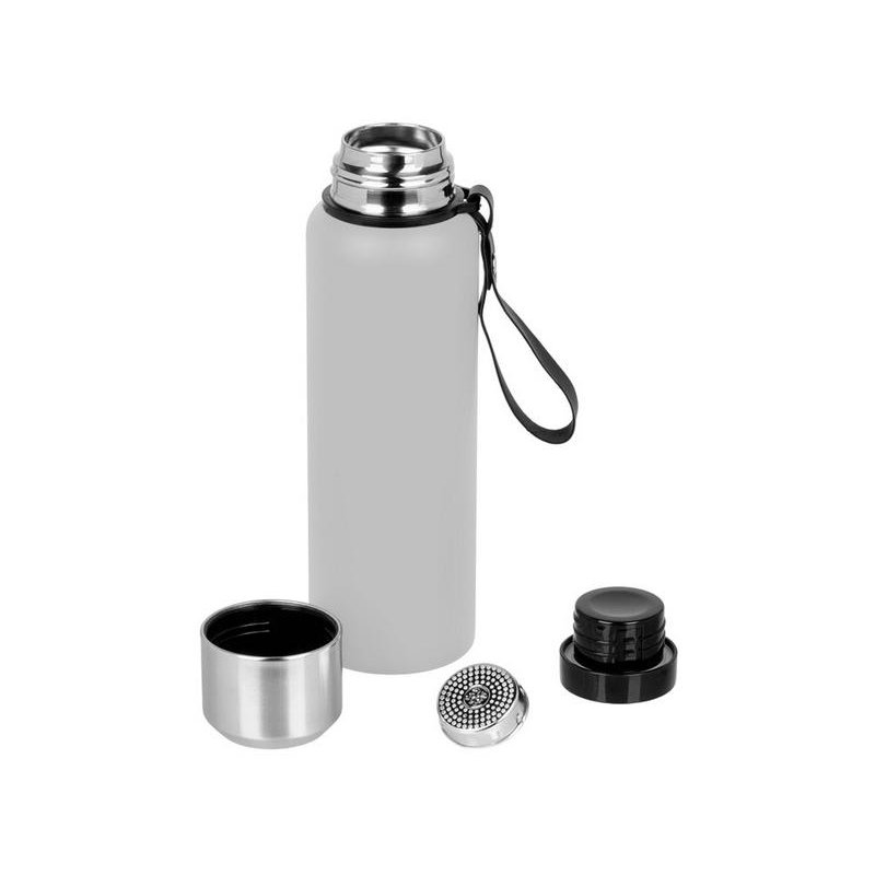 Вакуумный термос c двойными стенками из пищевой нержавеющей стали 304 марки для небольших путешествий и отдыха на природе. Надежно удерживает тепло и холод в течение 24 часов. Крышку можно использовать в качестве чашки. В комплекте имеется съемное ситечко из нержавеющей стали. Имеется прочный и удобный ремешок для переноски. Корпус покрыт специальной порошковой краской для надежного хвата и защиты от царапин. Объем 800 мл.