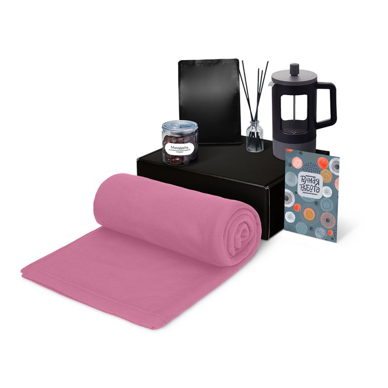 - Материал товара:плед - флис, полиэстер, кофе - пластик, френч-пресс - нержавеющая сталь, боросиликатное стекло, ПП пластик, диффузор - стекло, миндаль - пластик, мешок - нетканый материал (спанбонд), коробка - картон