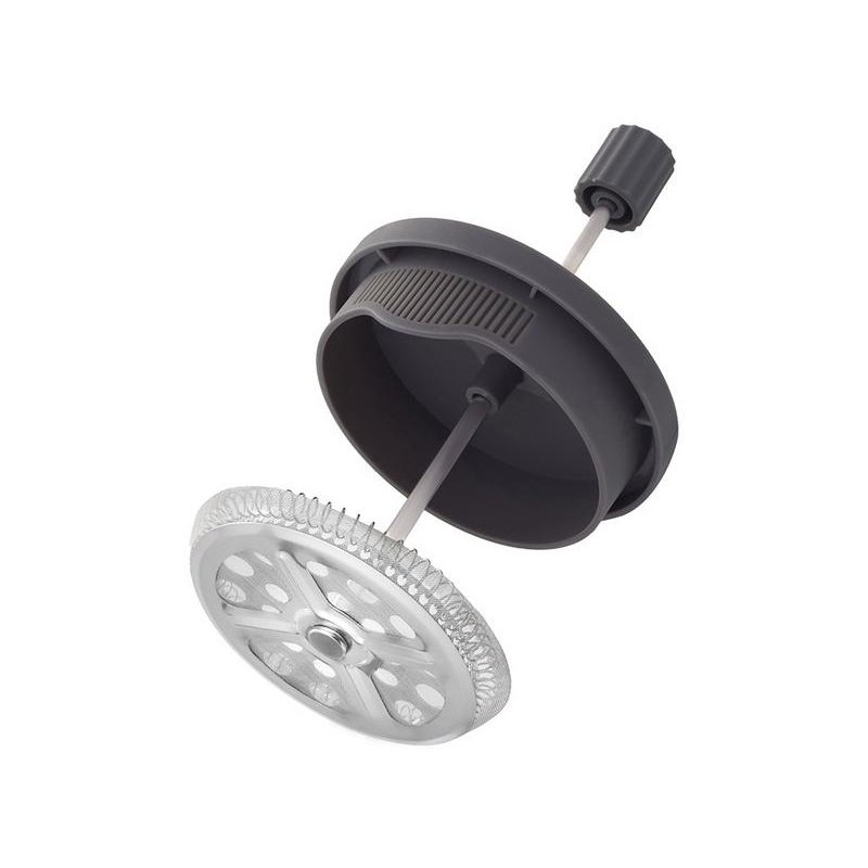 Сдержанная гармония черного и серого в пластиковом корпусе делает этот френч-пресс стильным акцентом любой кухни.