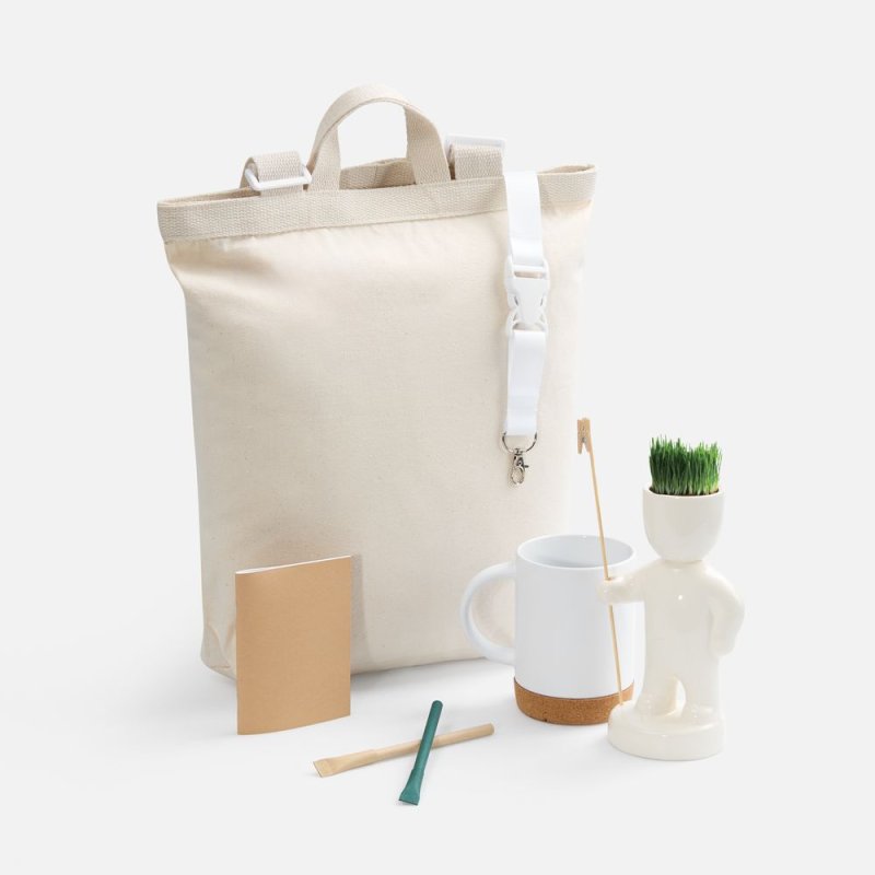 - Материал:рюкзак - хлопок, плотность 280 г/м²; набор для выращивания Funky Headman - керамика; кружка - каменная керамика, подставка - пробка; коробка - микрогофрокартон, Т-23Е; лента - нейлон, пластик; металл; блокнот, ручка - картон