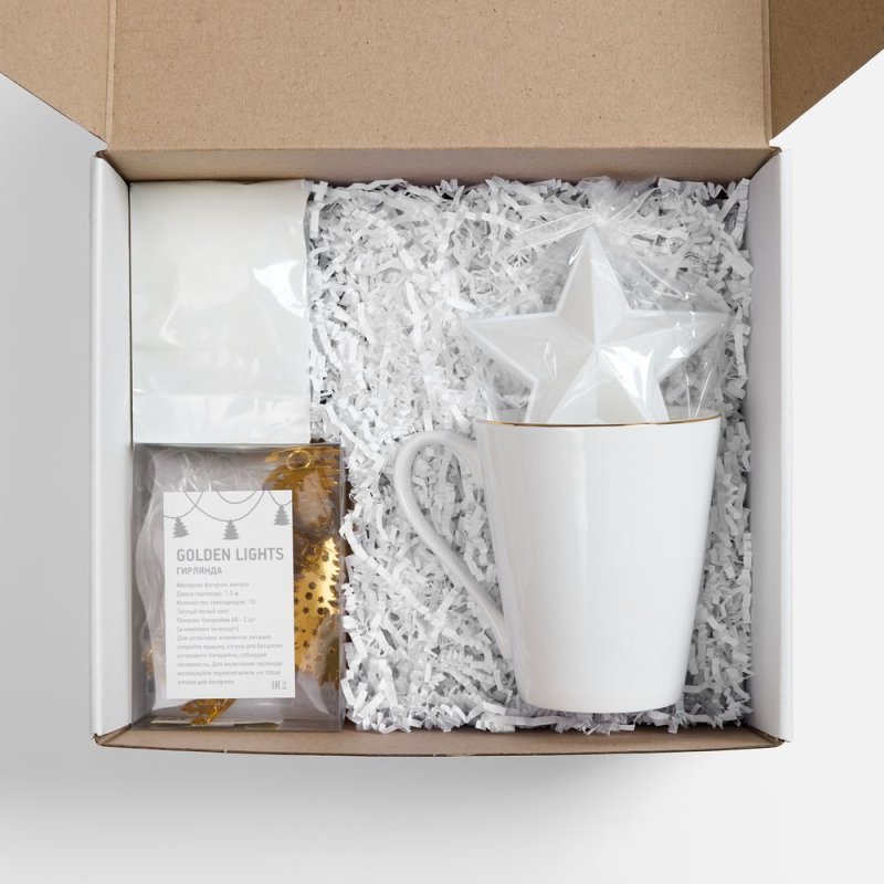 - Материал:кружка - костяной фарфор; гирлянда - пластик, металл; свеча - парафин; ежедневник - искусственная кожа; ручка - металл