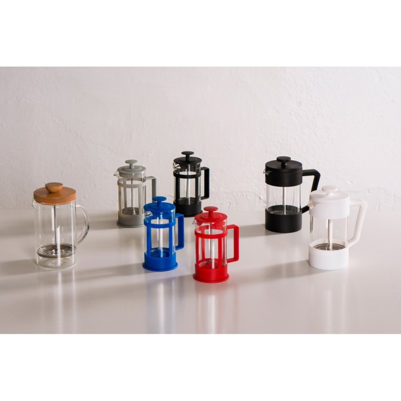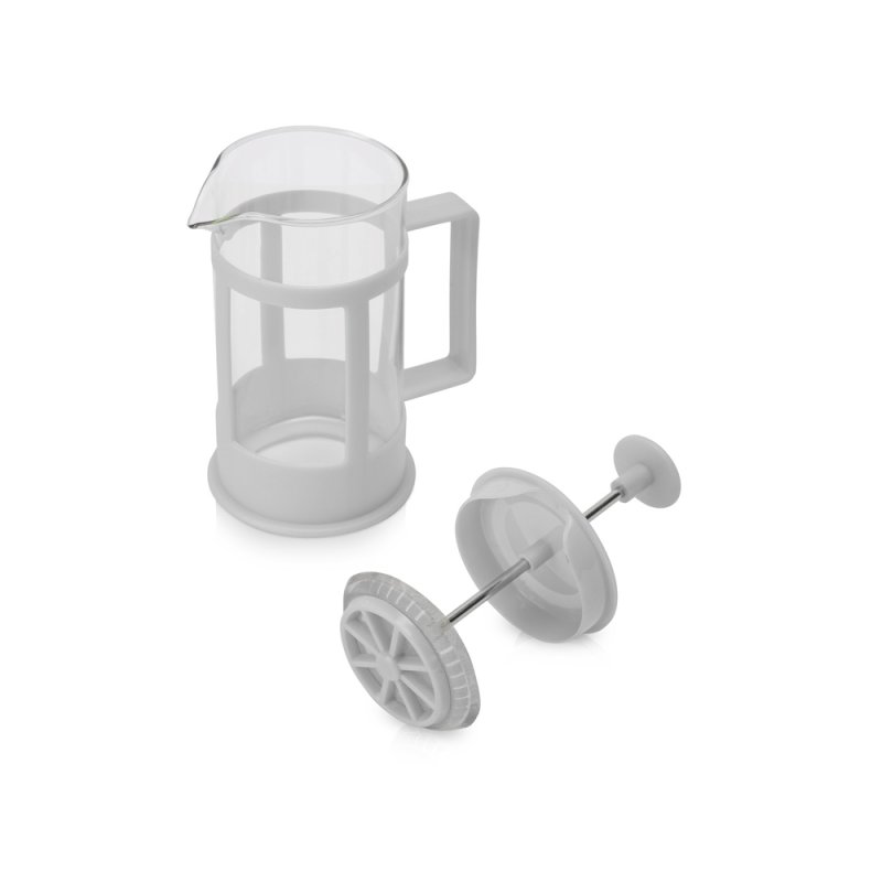 Этот кухонный прибор имеет плотно прилегающую пластиковую крышку, поршень из нержавеющей стали и пресс-фильтр с уплотнительным кольцом из пластика для отделения чайных листьев от воды.
