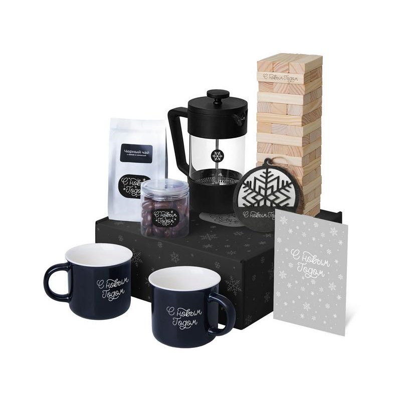 - Материал товара:кружка - костяной фарфор; френч-пресс - боросиликатное стекло, нержавеющая сталь, пластик; игра - дерево сосны, хлопок; подвеска - дерево; открытка - бумага; мешок - нетканый материал (спанбонд)