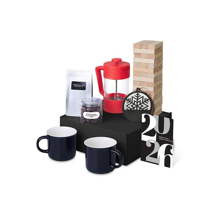 Набор Re:Together — о моментах, которые хочется разделить с близкими. Заварите чай с травами во френчпрессе, разлейте по кружкам и насладитесь временем с теми, кто дорог. Побалуйте себя сладким миндалём в глазури, проведите время за весёлой игрой и душевными разговорами. Маленькая подвеска на ёлку станет символом этих мгновений, напоминая о важности совместного времени и тёплых воспоминаний.