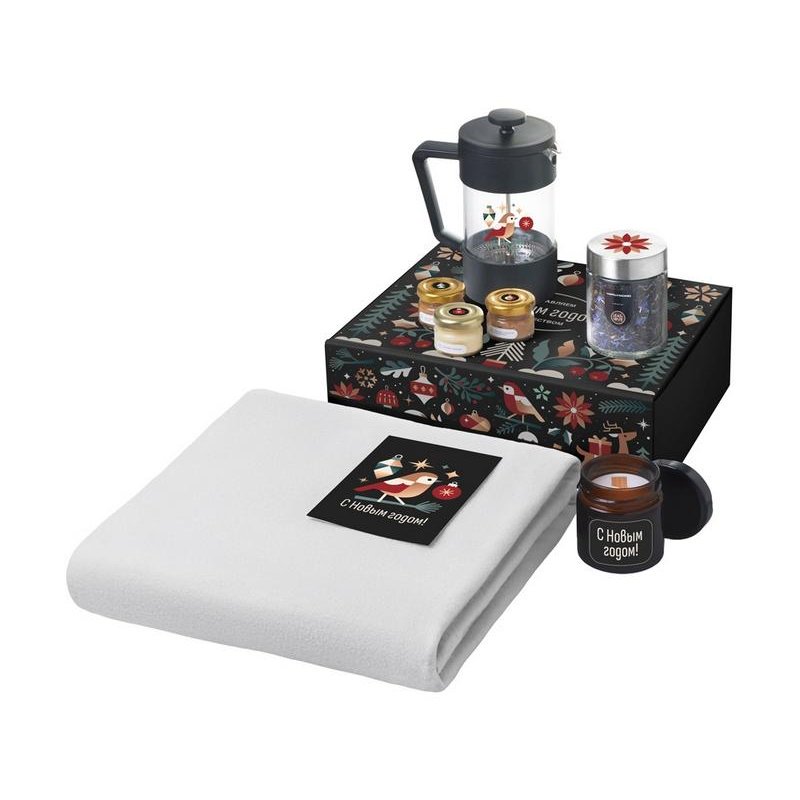 - Материал товара:плед - флис 100% полиэстер; френч-пресс - боросиликатное стекло, нержавеющая сталь, пластик; открытка - бумага; мешок - нетканый материал (спанбонд)