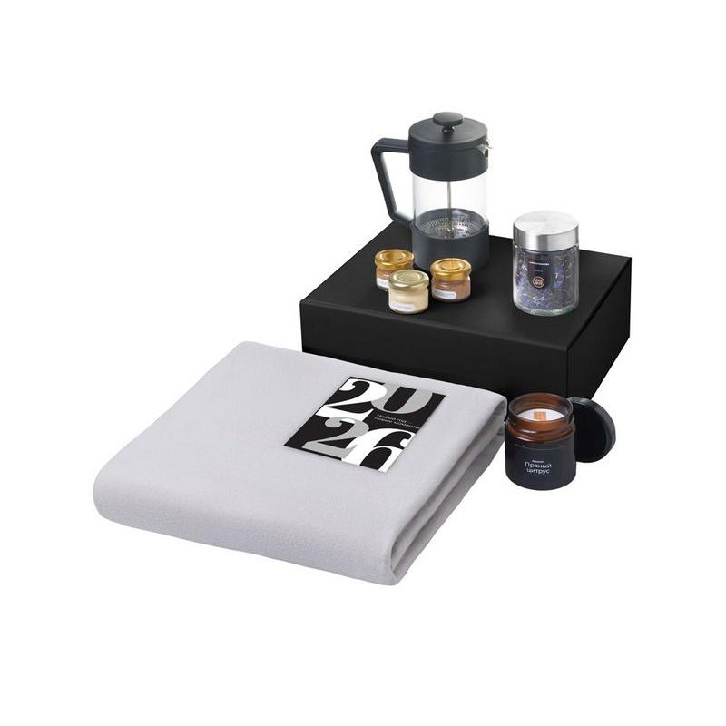 Заварите чай во френчпрессе, укутайтесь в мягкий плед и погрузитесь в аромат уютного вечера. Три баночки меда позволят экспериментировать со вкусами, а ароматическая свеча наполнит пространство теплом, спокойствием и приятным пряным ароматом. Этот набор превращает каждый глоток и каждое мгновение в маленький ритуал радости, спокойствия и настоящего уюта.