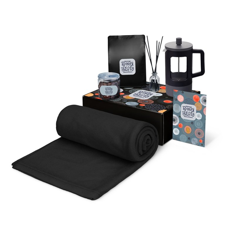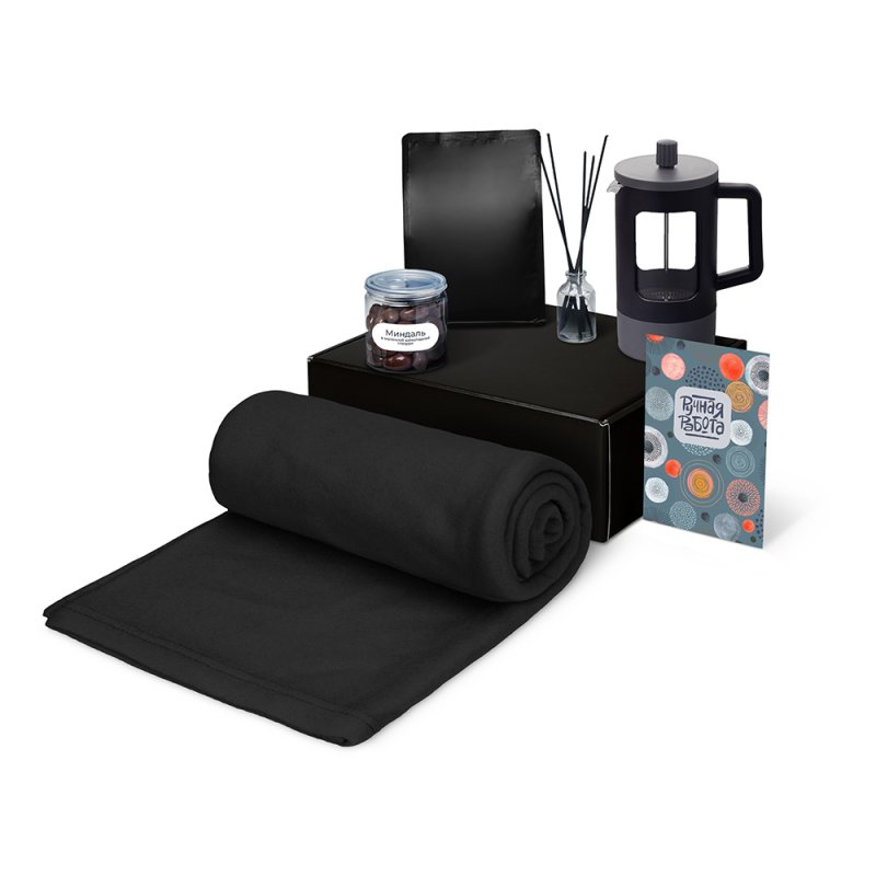 - Материал товара:плед - флис, полиэстер, кофе - пластик, френч-пресс - нержавеющая сталь, боросиликатное стекло, ПП пластик, диффузор - стекло, миндаль - пластик, мешок - нетканый материал (спанбонд), коробка - картон