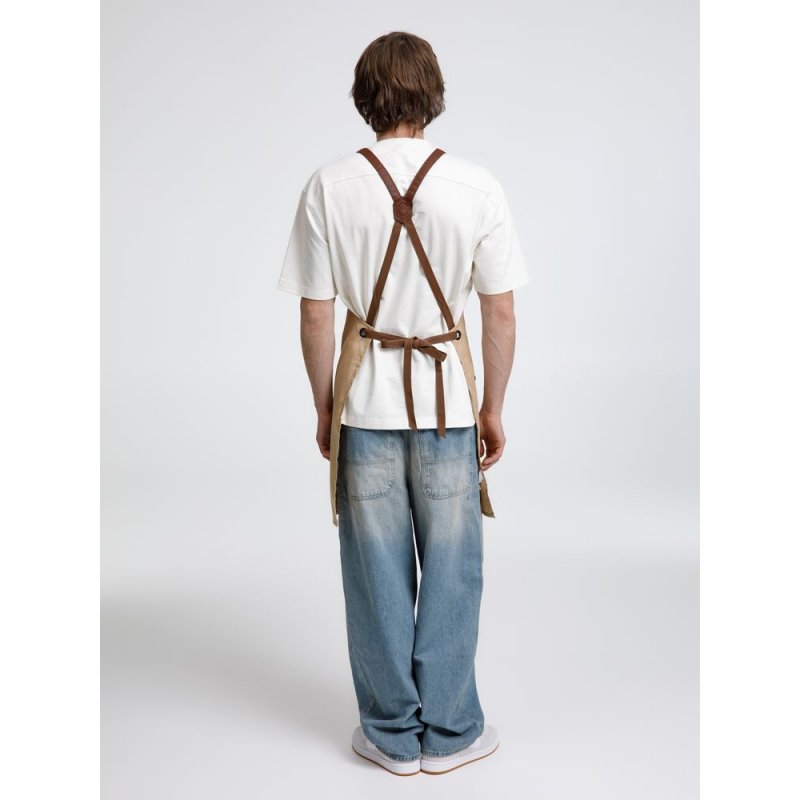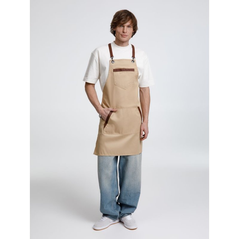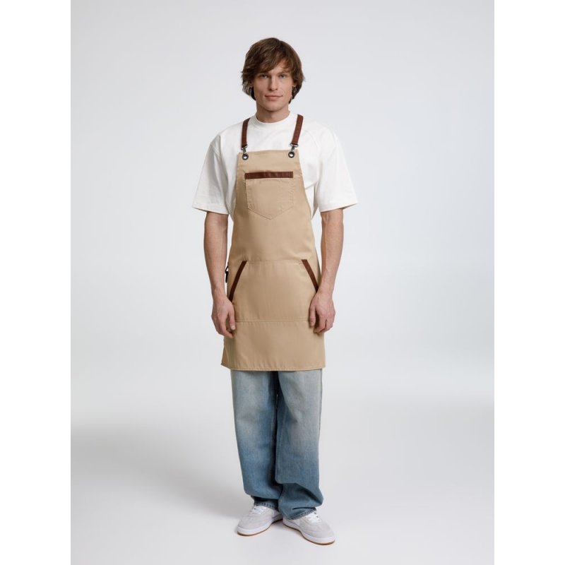 Функциональные карманы на груди и подоле эффектно украшают фартук, изготовленный из качественной дышащей плотной износостойкой ткани. Благодаря динамичным крестообразным лямкам он отлично сидит как на мужской, так и на женской фигуре. Кроме того, съемные лямки упрощают процесс стирки в стиральной машине.